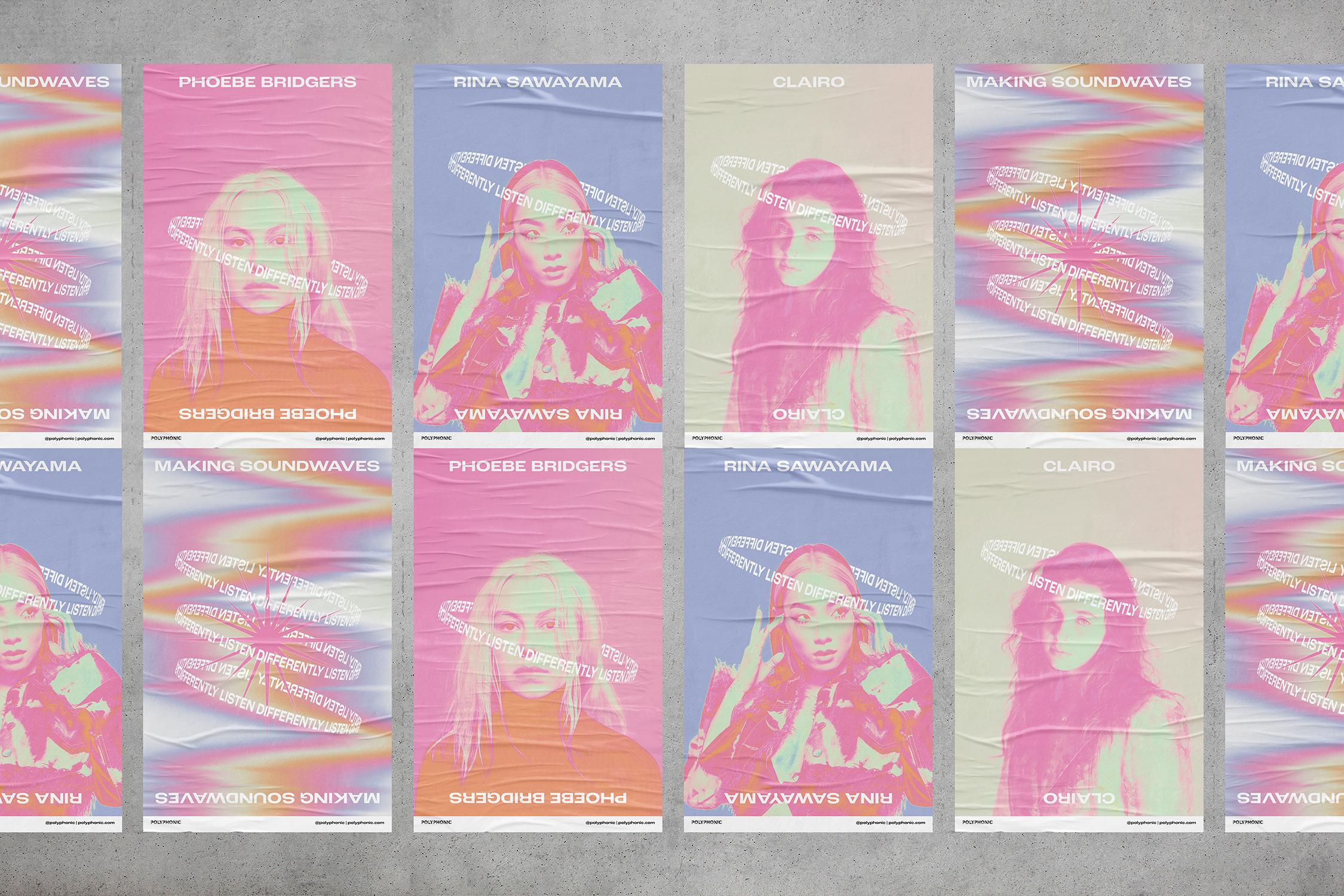 What began as the development and wireframing of Polyphonic’s 2020 annual summary in the form of a microsite turned into a dynamic promotional campaign and visual identity rollout. The campaign process began with the creation of a slogan fitting for the company’s reputation of being unusual and eclectic and their championing of independent artists and labels. Landing on “Listen Differently”, I proceeded to craft a vibrant and dreamy gradient design system inspired by the concept of synesthesia and reflective of the feeling of hearing a great new song for the first time.